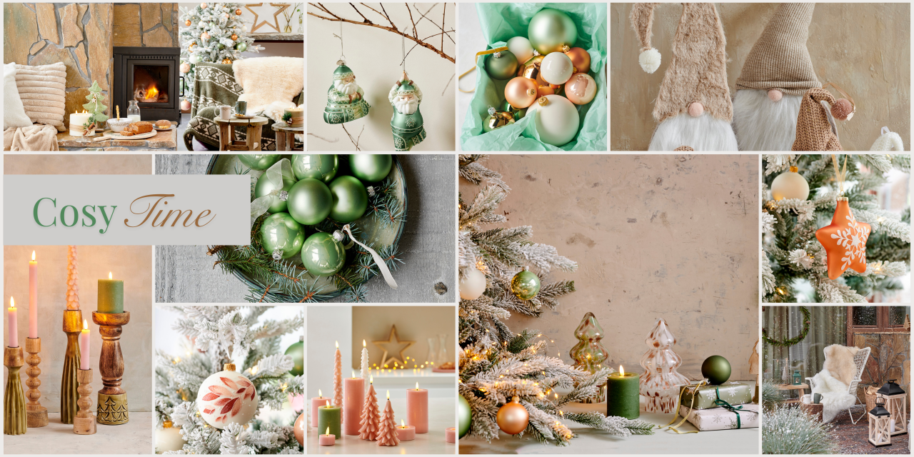Droom jij van een kerst vol warmte en rust? Dan is Cosy Time jouw trend. Deze stijl voelt als een knuffel: zachte kleuren, natuurlijke materialen en een kalme sfeer die je meteen thuis laat voelen. Denk aan warme tinten als wool white, peach pearl en rosemary green, aangevuld met hout, steen en zachte stoffen. Geen glitter en glamour, maar eenvoud en geborgenheid.