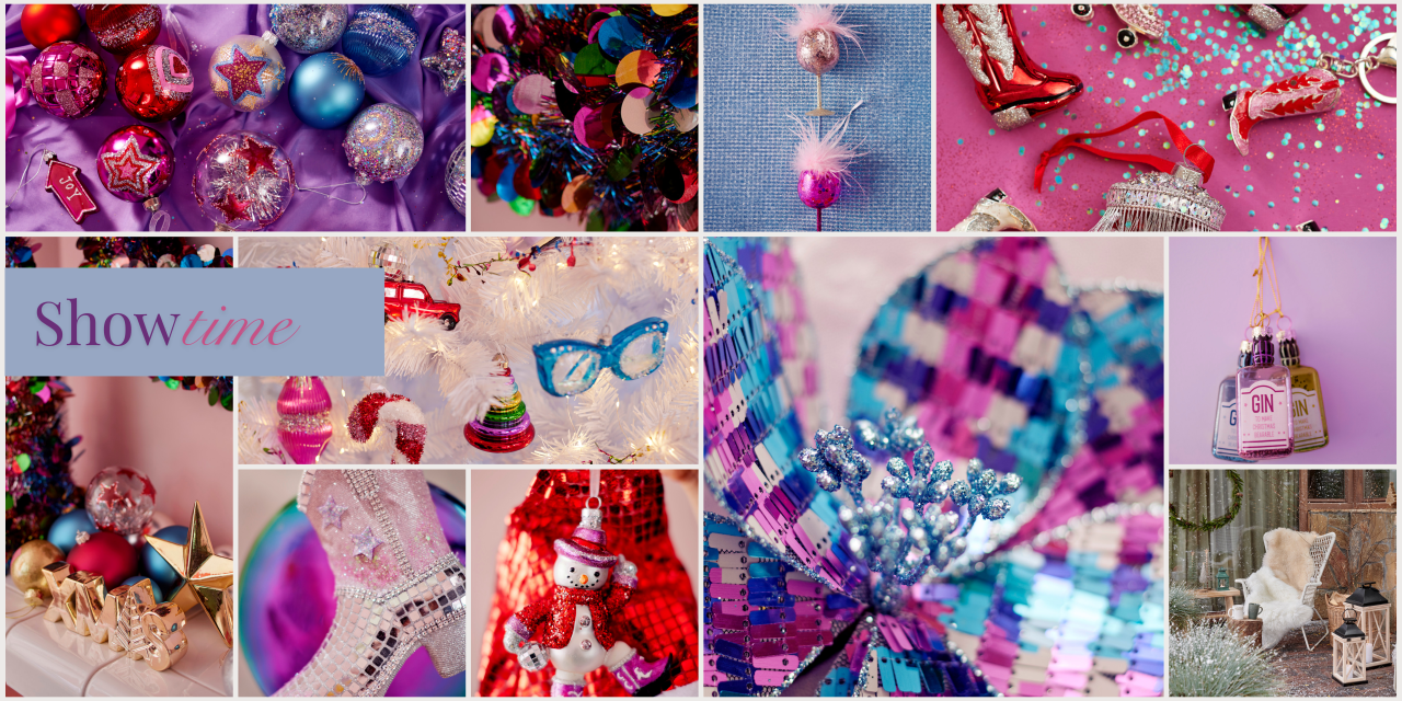 Hou jij van kerst met een vleugje over-the-top glamour? Dan is Showtime helemaal jouw trend! Denk aan fonkelende discoballen, metallic accenten en kerstballen in knalroze, rood en ijsblauw. Alles glanst, sprankelt en straalt – precies zoals een feestje hoort te zijn.
