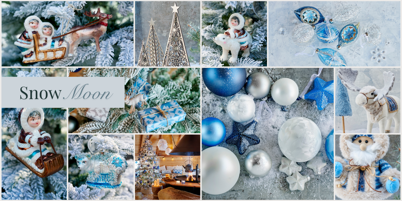 Droom je van een serene kerst vol winterse magie? Snow Moon brengt de betovering van een stille, besneeuwde nacht naar binnen. Wit, zilver en ijsblauw vormen samen een ijs palet dat doet denken aan maanlicht op een bevroren meer. Het resultaat is een kerststijl die koel én knus tegelijk is.